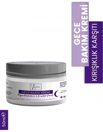 VA COSMETIC GECE BAKIM KREMİÜrün Açıklaması:İçeriğindeki güçlü aktifler ve özenle seçilen bitki özleri ile gece boyunca cildinizi neme doyurarak besler